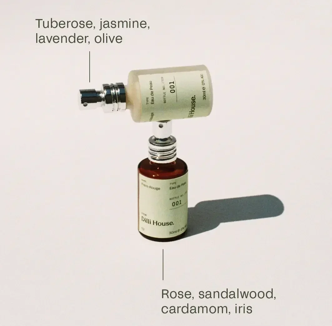 Prem Rouge is an Eau de Peau, which translates to water of the skin. Unlike alcohol-based perfumes, it's made with a water-plant emulsion that sits close rather than projecting across a room. It doesn't announce. It lingers near the skin, discovered only by those who come close enough to notice. In a culture that often equates love with performance - loud declarations, public gestures - there's something quietly radical about a scent reserved for your inner circle.